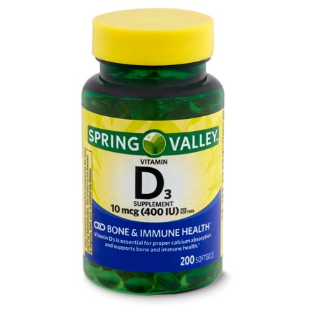 Spring Valley Vitamin D3 Supplement, 10 mcg (400 IU), 200 Softgels