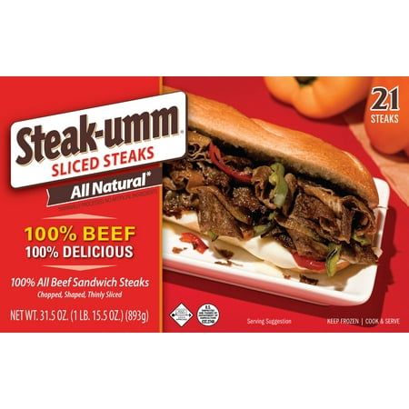 Steak-Umm, All Natural, Frozen Sliced 100% Beef Sandwich Steaks, 31.5 oz, 21 Count, Packaged Meals