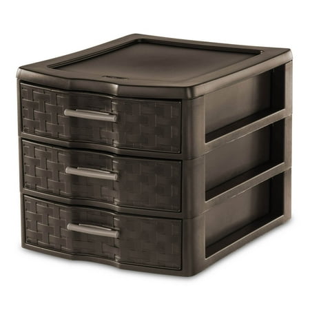 Sterilite Medium Weave Crafts Office 3 Drawer Storage Organizer, Brown