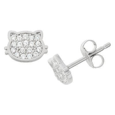 0.19 CT. T.W. Children's Pave Cubic Zirconia Kitty Cat Stud Earrings In Sterling Silver