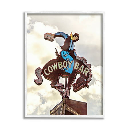 Stupell Industries Western Cowboy Bar Sign Abstract Painting White Framed Art Print Wall Art, 11 x 14