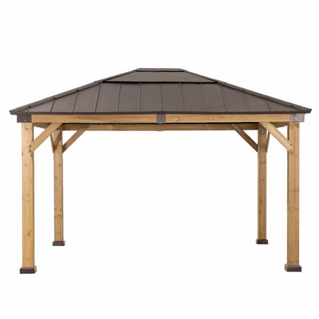 Sunjoy Aylin Outdoor Patio 11 ft. x 13 ft. Cedar Framed Gazebo with Brown Steel and Polycarbonate Hip Roof Hardtop