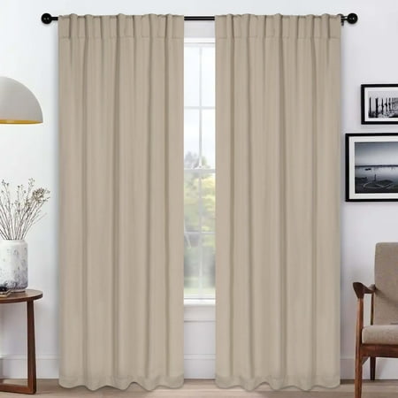 Superior Blackout Curtains, Room Darkening, Bedroom, Drapes, Kitchen, Living Room Window Accents, Sun Blocking, Thermal, 2 Pack, Solid Blackout Back Tab Curtains, Set of 2, 52" x 108", Ivory