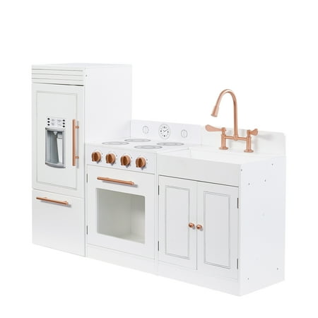 Teamson Kids Little Chef Paris Modular Contemporary Interactive Wooden Play Kitchen with Refrigerator, Oven, Sink, and Storage Space for Easy Clean Up, White with Rose Gold Finishes