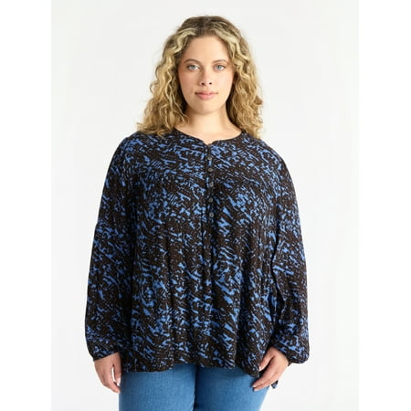 Terra & Sky Women’s Plus Peasant Blouse with Long Sleeves, Sizes 0X-5X