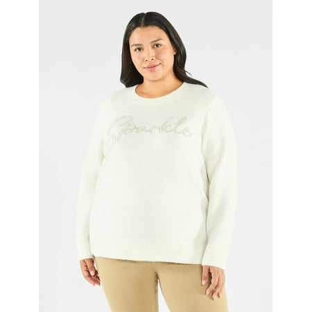 Terra & Sky Women's Plus Holiday Talking Sweater, Midweight, Sizes 0X-4X