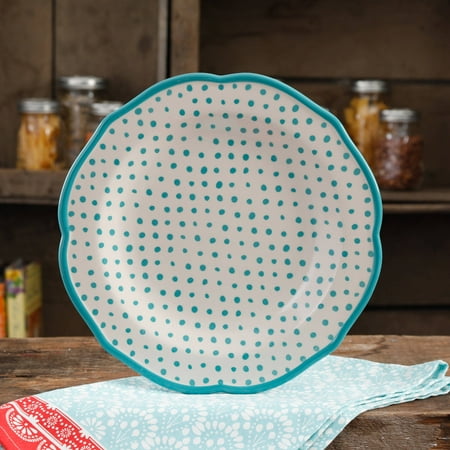 The Pioneer Woman 10.5" Retro Teal Dot Dinner Plate