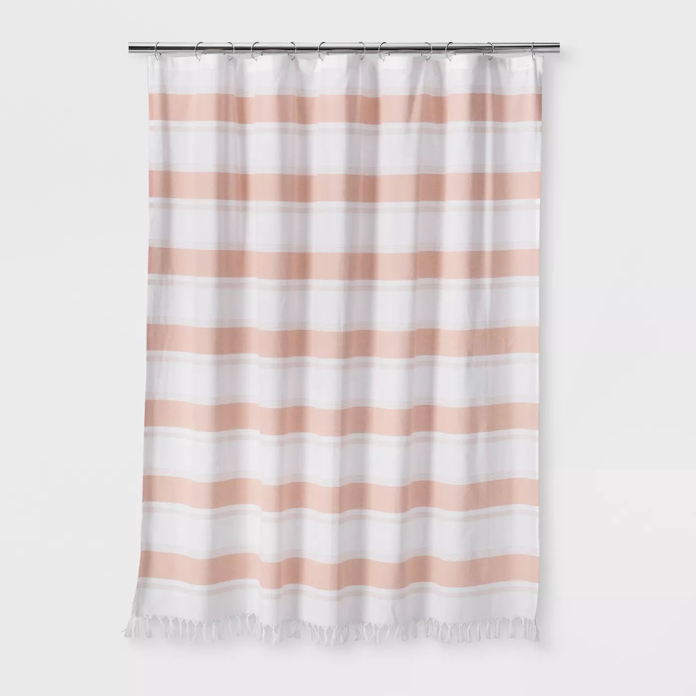 Threshold 72 Width x 72 Lingth Inch Woven Stripe Shower Cotton Plain Weav Curtain, White