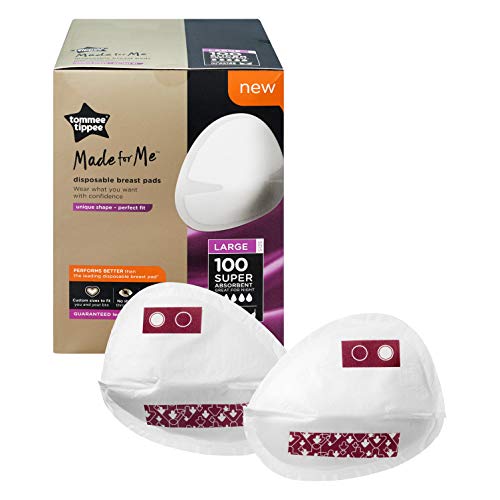 Tommee Tippee Made for Me Super Absobent Disposable Breast Pads, Large (100 Count) | Soft, Leak-Free, Contoured Shape, Adhesive Patch