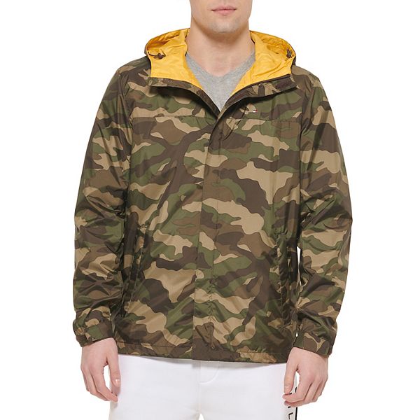 Men's Tommy Hilfiger Hooded Rain Jacket Color: Camoflauge Size: XS