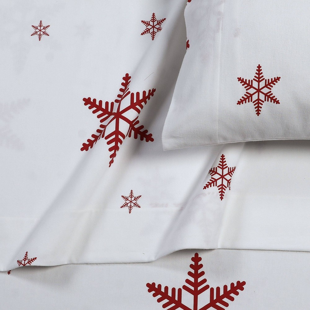 Tribeca Living California King Bianca Snowflakes Portuguese Cotton Flannel Extra Deep Pocket Sheet Set