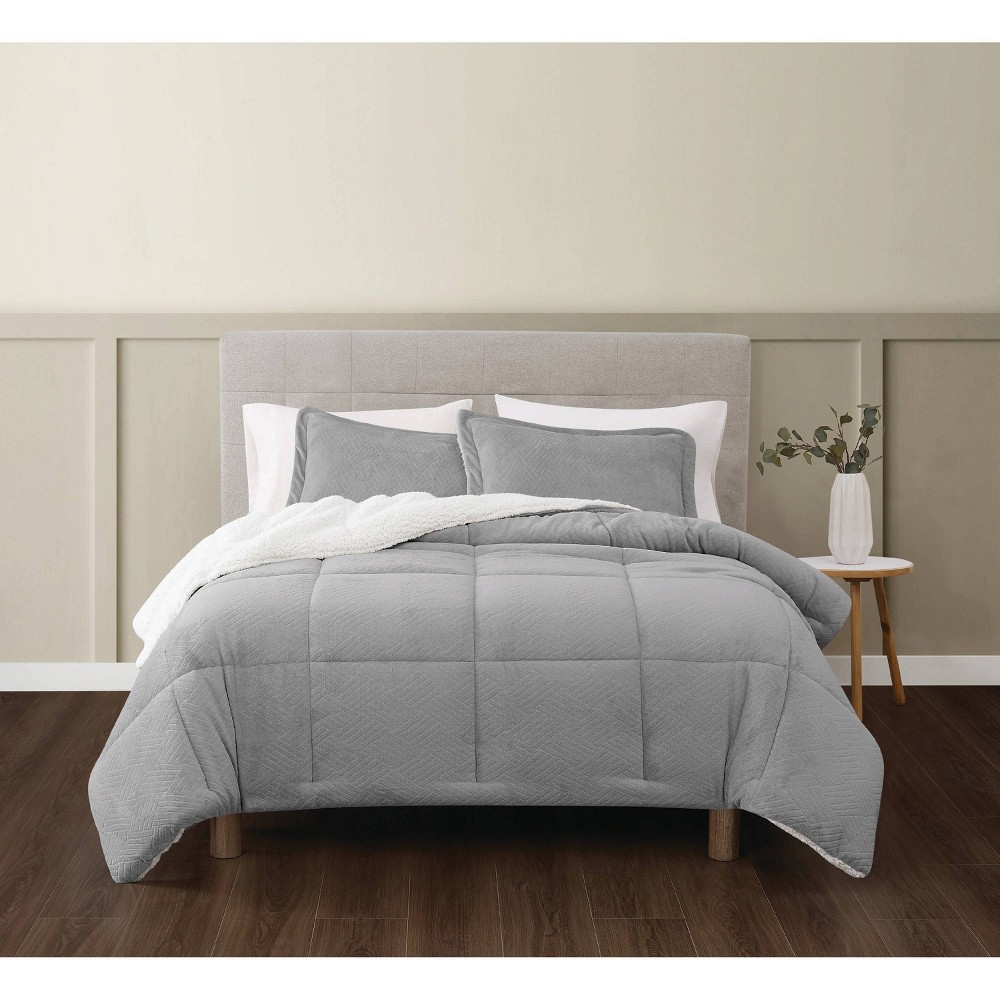 Truly Soft 3pc Full/Queen Basket Carved Faux Fur Comforter Set Gray