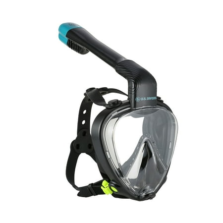 U.S. Divers Dryview Full Face Snorkeling Mask for Adults - Distortion-Free 180 Vision, Shatter-Resistant Lens, Removable Snorkel and Travel Bag Included, Comfortable Silicone Skirt, (Black) L/XL