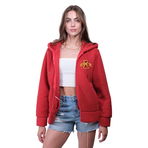 Ultra Game NCAA Official Women's Full Zip Sherpa Hoodie, Iowa State University, Team Color, Small