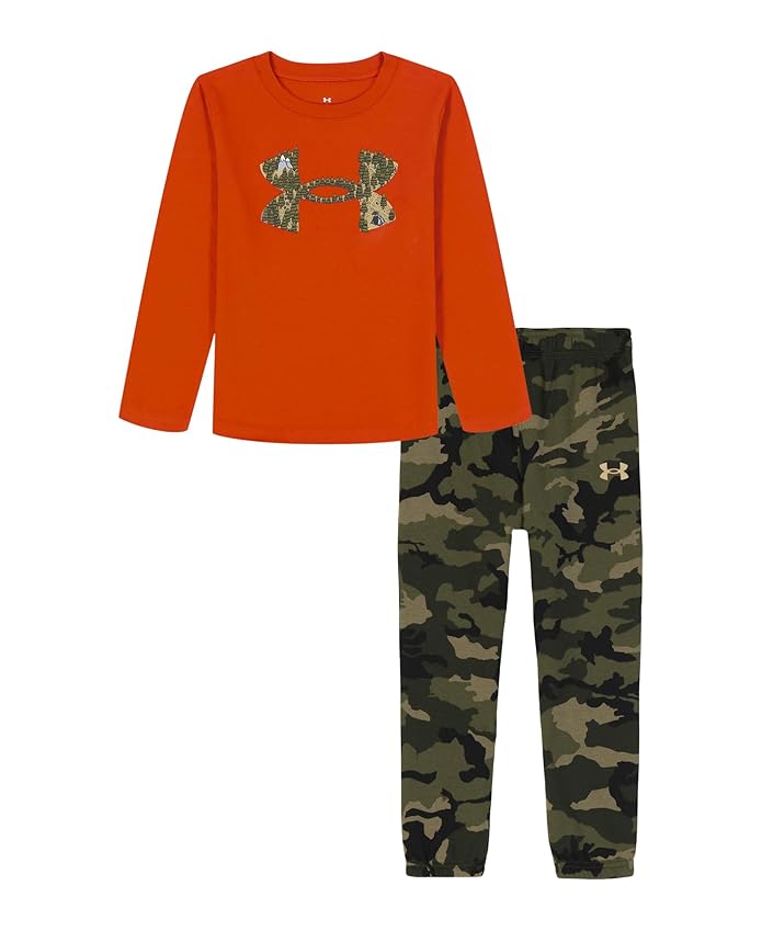 Under Armour Baby Boys' 2-Piece Long Sleeve T-Shirt and Fleece Pants Set, Outdoor Collection, Surplus Orange Camp, 24M