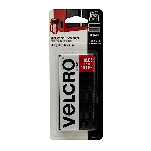 VELCRO Brand Industrial Strength Strips | Indoor & Outdoor Use | Superior Holding Power on Smooth Surfaces | 4in x 2in Strips | Black | 3 Count 90977W