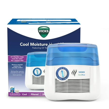 Vicks 1 gal 400 sq ft Cool Moisture Humidifier with UV Technology, V3900, Blue/White