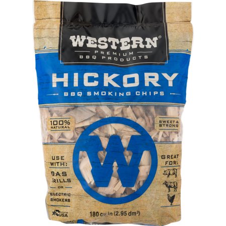 Western Premium BBQ 180 Cubic Inch Hickory Barbecue Flavorful Heat Treated Grilling Smoking Wood Chips for Charcoal Gas and Electric Grills