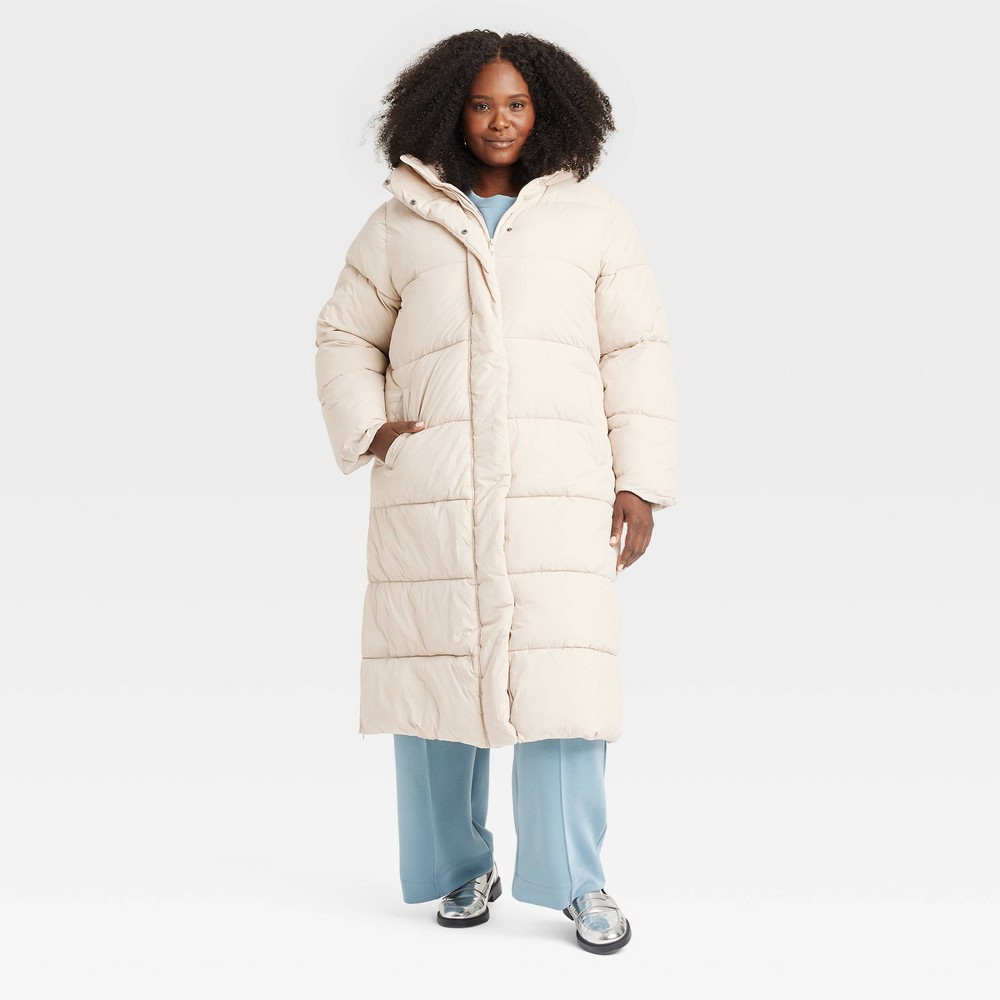 Women's Hooded Duvet Puffer Jacket - A New Day™ Cream XXL