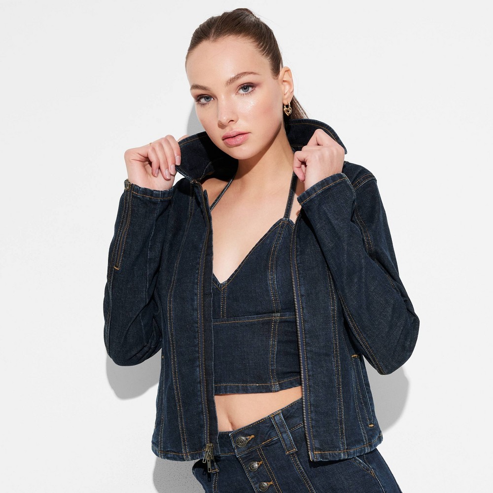 Women's Seamed Denim Moto Jacket - Wild Fable™ Dark Wash M
