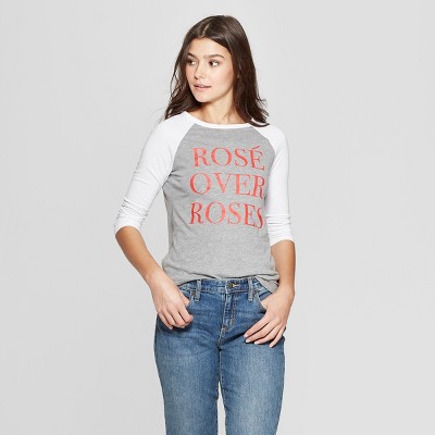 Womens Rose Over Rose Raglan 3/4 Sleeve T-Shirt - Modern Lux (Juniors) Heather Gray S