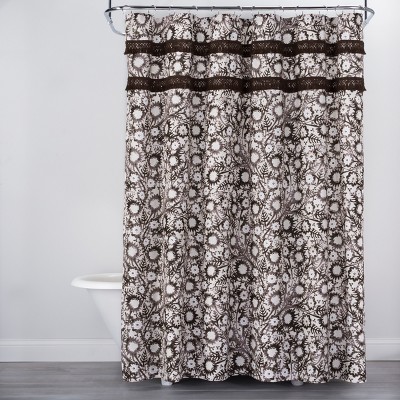 Botanical Print with Fringe Shower Curtain Brown/White - Opalhouse™