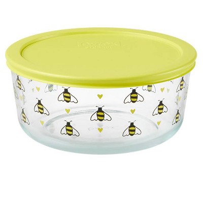 Pyrex 7 Cup Glass Bee Happy Food Storage Container Yellow