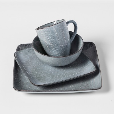 Solene Square Stoneware 16pc Dinnerware Set Dark Gray - Project 62™