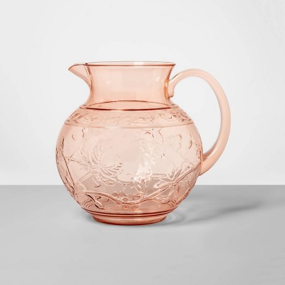 3qt Plastic Floral Embossed Beverage Pitcher Pink - Opalhouse™
