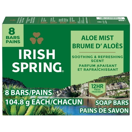 Irish Spring Aloe Mist Deodorant Bar Soap for Men, 12 Hour Fresh Deodorant Soap, 3.7 oz Bar (8 Pack)