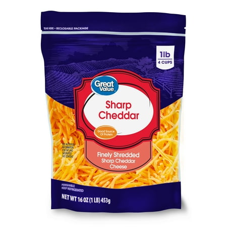 Great Value Sharp Cheddar Finely Shredded Cheese, 16 oz Bag