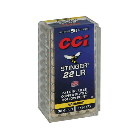 CCI Stinger, 22 LR, 32 gr, Jacketed Hollow Point, 1640 fps, 50 Count