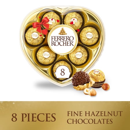 Ferrero Rocher Fine Hazelnut Chocolates, Valentine’s Day Heart Gift Box, 8 Piece Premium Chocolate for Gifting, 3.5 oz
