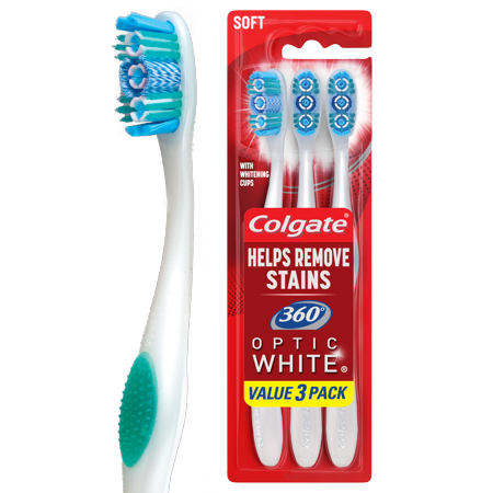 Colgate 360 Optic White Whitening Toothbrush, Soft - 3 Count