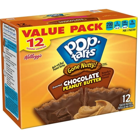 Pop-Tarts Gone Nutty! Breakfast Toaster Pastries, Frosted Chocolate Peanut Butter, Value Pack, 12 Toaster Pastries