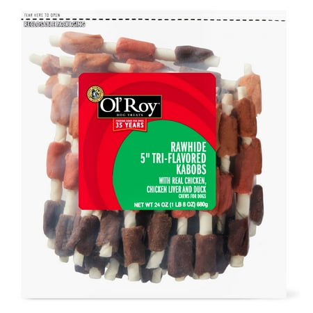 Ol' Roy Rawhide Tri-Flavored Kabob Dog Chews, 5", 24 Oz.
