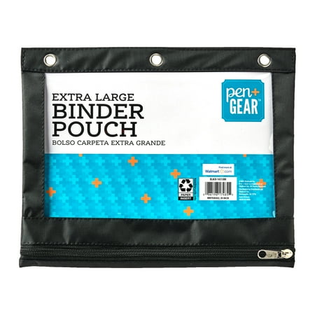 Pen + Gear Extra Large Polyester Binder Pouch Pencil Case, Black, 11" x 8.75"