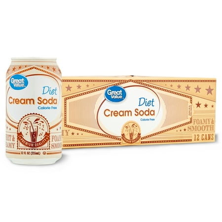 Great Value Diet Cream Soda Pop, 12 fl oz, 12 Count