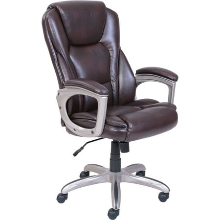 Serta Heavy-Duty Bonded Leather Commercial Office Chair with Memory Foam, 350 lb capacity, Brown