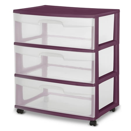 Sterilite Wide 3 Drawer Cart Red Currant