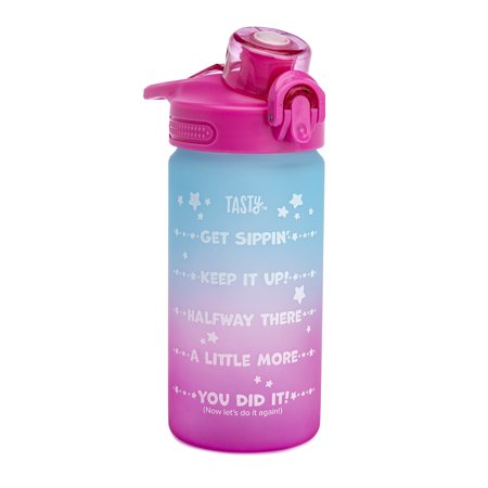 Tasty 16 Oz Pink and Blue Ombre Plastic Water Bottle with Wide Mouth and Flip-Top Lid
