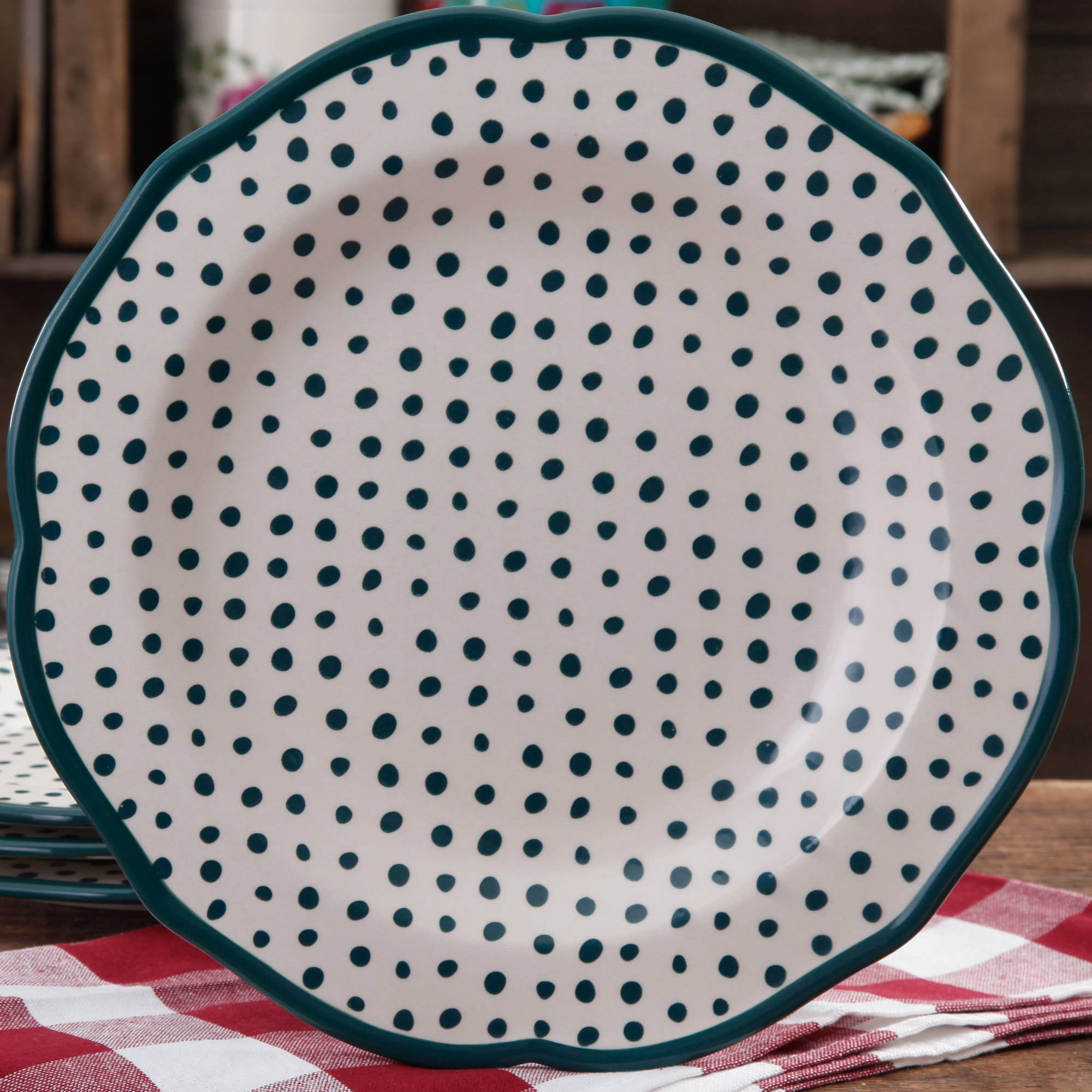 The Pioneer Woman Stoneware 10.5" Teal Dots Dinner Plate