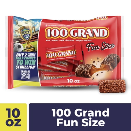 100 Grand Candy Bar, Milk Chocolate with Rich Caramel, Fun Size Individually Wrapped Candy Bars, 10 oz Bag