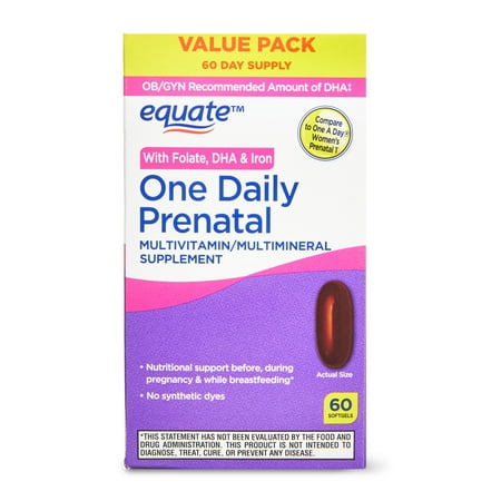Equate One Daily Prenatal Softgels Multivitamin/Multimineral Supplement, Value Pack, 60 Count, Compare to One A Day® Women’s Prenatal 1