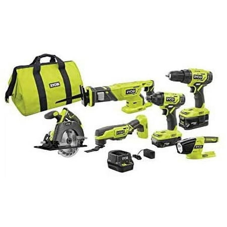 Ryobi P1819 18V One+ Lithium Ion Combo Kit (6 Tools: Drill/Driver, Impact Driver, Reciprocating Saw, Circular Saw, Multi-Tool, LED Worklight, 4.0 Ah & 1.5 Ah Battery, Charger, Bag)