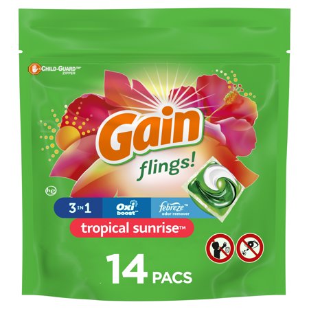 Gain Flings Tropical Sunrise, 14 Count Laundry Detergent Pacs