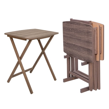 Mainstays XL Oversized Folding Tray Table Set of 4 with Rack, Rustic Gray